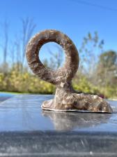 Root beer Texas material knapped into a circle in stone |