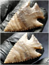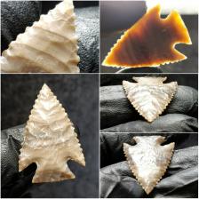 Cleanly flaked and well balanced Scallorn in Montana Petrified Wood. This piece exhibits excellent growth ring preservation.