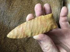 Made from beautiful Coastal Plains chert from Brier Creek! Serrated sharp and hafting area is ground. Thanks for looking! |