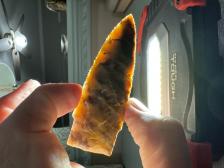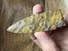 Made from one beautiful piece of Polkadot agate from Oregon! Unique coloring and a couple of tiny crystal pockets. Serrated sharp, hafting area is ground. Thanks for looking! |