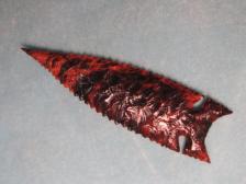I was in a Crump Lake sort of mood today. This serrated expanding notched Crump Lake Northern Side Notch Point is make out of black and mahogany obsidian with gold sheen that flashed on one side in the mahogany red color. This one I made from a big spall and percussioned and pressure flaked it down the old way ...just because. They really did make points this nice and elaborate in SE Oregon's Warner Valley. Nicely serrated like the old ones were with expanding notches. These were used as atlatl dart points on big game and no doubt did the job well. |