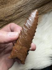 Made from beautiful pumpkin obsidian with needle like serrations nearly to the tip! Serrated sharp, thanks for looking! |