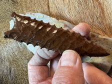Needle like serrations on this oblique flaked Dalton! Made from pumpkin obsidian. Serrated sharp , thanks for looking! |
