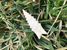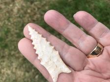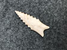 A nice little serrated Dalton by Bob Thomas. It’s knapped from Missouri Burlington and is light orange in color. Bob is a well-known, master flint knapper from Arkansas, who has knapped for decades. Knapped July, 2000. Inv # 0007-78R |