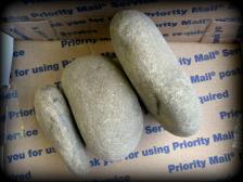 I use hammerstones like these to do over 95% of my percussion flaking, and 100% of my abrading. Sandstone hammerstones are used for SOFT hammer percussion flaking on a variety of stones, and works especially well on brittle rocks like obsidian. Finding sturdy sandstone of the right consistency is difficult. However, I have discovered a source nearby. I know of several Southern California knappers that would travel all the way to Idaho for their sandstone hammerstones before this source was recognized!