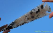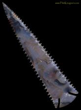 A lithic masterpiece made from the finest "Shantilli Lace" Agate. Holding this impressive piece and taking in the clear, creamy, and orange hues with black banding draws you in and captures the imagination. The stone is translucent and glossy; the point is wickedly serrated and perfectly notched. This is a true masterpiece. It is signed and dated by the artist.