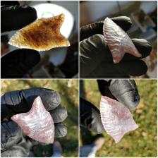 Spalled with solid copper round, then spall was bifaced with indirect percussion and pressure to finish.