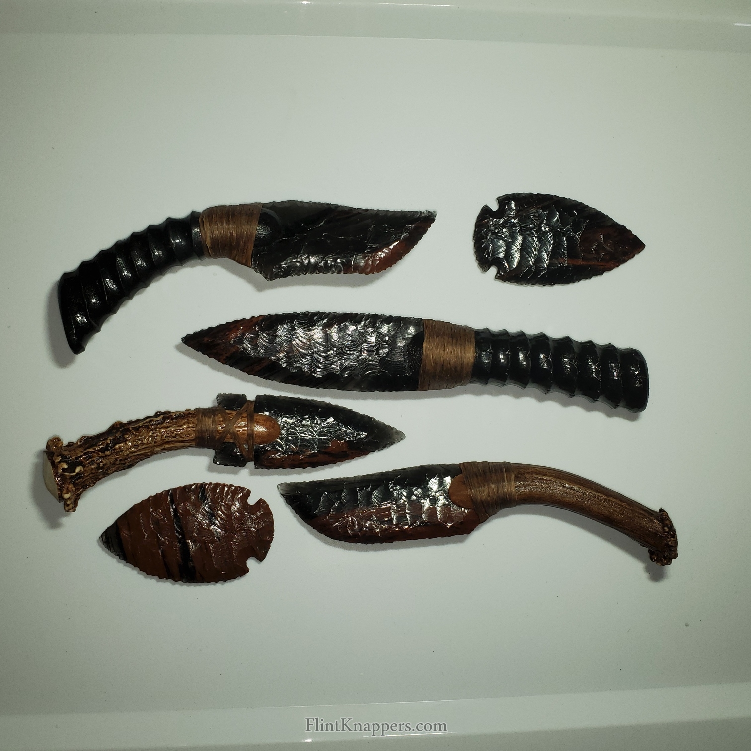 Lace and Red Obsidian Paleo Knife w Elk Antler & Walnut End Cap |