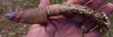 Sunset Jasper blade, White tail shed antler handle.