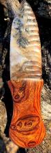 Cliff Carney's beautifully knapped Snake River agate hafted to a Way-Whacko-on Fire Ironwood handle......occasionally a piece of wood shows up that has depth with gold flames throughout, not just a blotch or few.