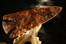 This is an incredibly beautiful piece of Snake River. This is one of my favorite points ever. Extremely deep narrow notches really set this spear point off as a collectors dream This is a big spear with great flake patterns and refined edges. A defiant center piece. |