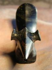 Here's a really nice Steatite Popeyed Birdstone. This stuff is seriously hard stone, right up there with Marble. It has streaks and spots that don't really show up in the pics. It also has an inclusion across the beak that I believe might be Pyrite. |