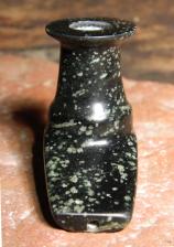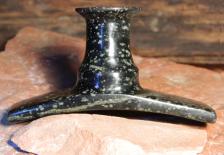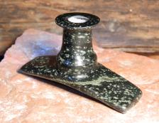 This is a very nice plain Platform Pipe made from some Soapstone I was told came from the New England area. I made one very similar to this one a while back. Just like the other earlier pipe, if you shine a light into the bowl , a little of the stack transmits a greenish light. A very cool pipe.