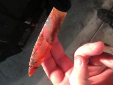 This is the largest piece of Montana agate I’ve ever seen or owned beautiful oranges and reds one of a kind piece of material 4.5†long pics do not do the points justice folsom not included |