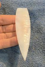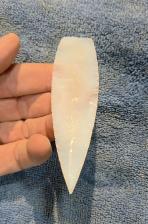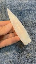 Here is beautiful point made from White cathedral agate. Beautifully flaked with very nice edgework. Thanks for viewing. |