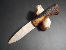 Here fresh out of the shop is a Stag Handled flint knife that I added a Yew butt cap to, it has a Keokut flint blade hafted with deer sinew and a slightly aged look, very nice piece to add to your collection, sharp and functional........... $6 shipping |
