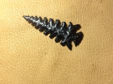 A very nice Stockton corner notch point made from Napa Black obsidian using only tools that would have been available to the flintknappers producing stockton points in prehistoric california. |