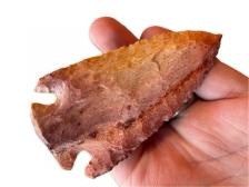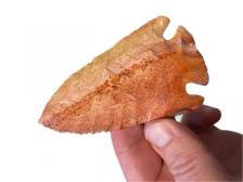 A beautiful striped Kirk Corner Notch blade. This one has vibrant orange and red colors. The edges have a fine pressure flaking pattern that really pops.