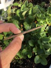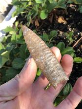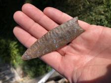 This is a rare type of stromatolite (fossil algae) from The Barrel Springs deposit. This point has beautiful blue chalcedony and nice stromatolite patterns, thin and sharp. |