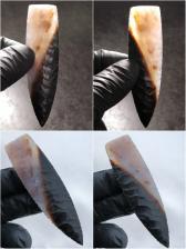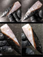 My best Agate Basin to date. Double A-sided. Excellent form and great symmetry. In a Stunning piece of premium Jafar Jasper. Epic split of Jet black Jasper, and smokey chalcedony/agate, separated on both faces by 2 bands of red and orange. Very high luster. Very happy with this eye catcher. The pictures don't do it enough justice, it is especially nice in the hand. I've included a floating frame for free to show off this special point (visible in last set of pics).