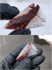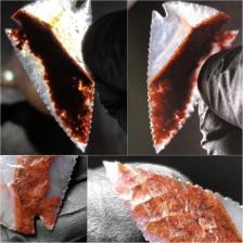 Well, this is hands down the coolest piece of Brazilian I've ever seen. I've never seen this type of red moss/plume in banded Brazilian before, or any Brazilian that I can think of, and I've worked many hundreds of pounds, if not thousands. Regrettably I broke 2 of my preforms trying to figure out the quirks of this material, but on the bright side, I think this one frames the Moss/plume better then the ones I broke did! I could say a lot more about this awesome stuff but just check it out! I took a lot of pictures. Haha.