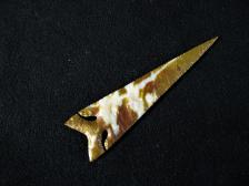 Sleek little Wintu point knapped from a real nice colored piece of Oregon Sunset jasper. Real thin and fine flaking. |