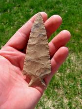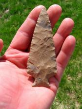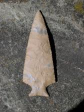 Here is a super Susquehanna Point. Anyone in the Northeast can appreciate this Woodland era point. This one is made from Onondaga Chert that has been patinized to give it an old look like many of the originals found in the Northeast. I simply can't make a Susquehanna better than this one! |
