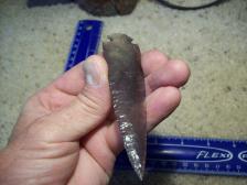 I Knapped this point out of some suttle sheen obsidian from Davis Creek Caly.Nice dovetail style point for any collection. Thanks for your continued interest and have a good day.Will combine shipping. |