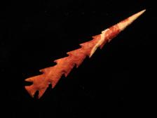 I've not made one of these in a while so here's another. This one is made out of piece of red mookite with pretty white banding in the front dark red area although flaking the back end of the lighter red color was like chipping a piece of brick!...eesh... I was able to make it behave though.....barely. |