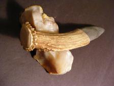fresh off the press comes this beautiful Texas flint knife, the blade was percussion knapped from Georgetown flint then hafted to a nice whitetail antler base using epoxy for a secure bond............ This knife is sharp and function............... $6 shipping and I can combine items for discounted shipping. |
