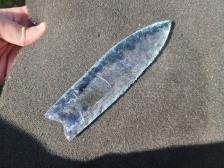 A nice flaked and fluted glass clovis I made from a broken tabletop.