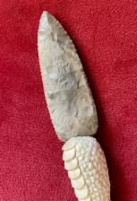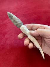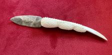 Talon knife with hornstone blade. Handle is carved in deer antler and knife is 8” long.