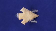 Flintknapped from a piece of heat treated Texas chert, needle tip with sharp serrated barbs |