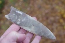 This beautiful point was knapped by Brian Cofield. I have collected a lot of Brian's work because I like his style, attention to detail, and in my opinion I think his points will appreciate over time. Texas Pedernales Flint, measuring 5 1/2 inches by 1 1/4 inches. Shipping is Free |