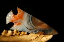 The is Blue Mystic an incredibly beautiful piece of stone. This is the only piece of this agate that I have ever owned. It is a true rarity. The sister piece to this point, a larger knife, was priced at $4000 dollars. This point is much bluer in life than it appears in photos. It was an expensive piece of rock but well worth the price. This is an amazing point. |