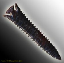 This bone-chilling and wicked point, nicknamed "Intimidator", is made from a dark dark blood red Brazilian Agate. It is expertly crafted and dangerously sharp. Signed and dated by Randy Beach. |