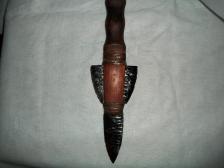 three bladed knife wooden handle blades made of obcidian .three blades incerted into handle .very unusual peice.