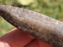 One of five Eden points all made from self collected Tiger Chert from Wyoming. This point has all of the characteristics of the notable Finley site near Eden, Wyoming. Hence the name.