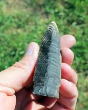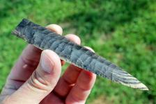 This Eden is a Beauty! I made this from RAW Tiger Chert that was self collected earlier this year. Its RAW, did I mention that, it can be done. This Eden exhibits all the classic characteristics that Edens has, diamond cross section, ground base and stellar flaking. |