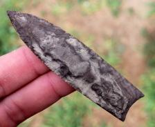 Made from a great piece of Tiger chert, side A presents with some ghost stripes. |