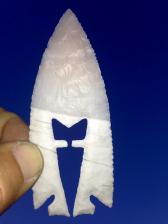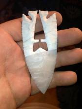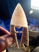 WOW!! check out this novaculite two tone! Translucent tip fading with translucent stripes into the pure white!!! Two great points here! A Thebes theme with a TOYAH GHOST!!! Beautiful art here folks!!