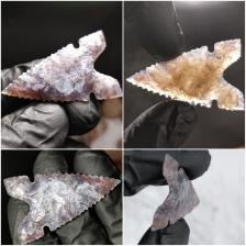 Nice Toyah in Indian Red Moss Agate, although it is a bit on the larger side for the type. Nice flaking and balance, with a shiny luster, and absolutely awesome features. Love the look of this material.