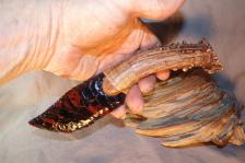 Lace and Red Obsidian Paleo Knife w Elk Antler & Walnut End Cap |