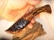 Knapped Dacite Paleo Knife Elk Antler with Walnut End Cap Handle |