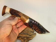 Triple Flow Obsidian Skinning Knife Carved African Antler Handle |