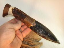 Knapped Dacite Paleo Knife Elk Antler with Walnut End Cap Handle |