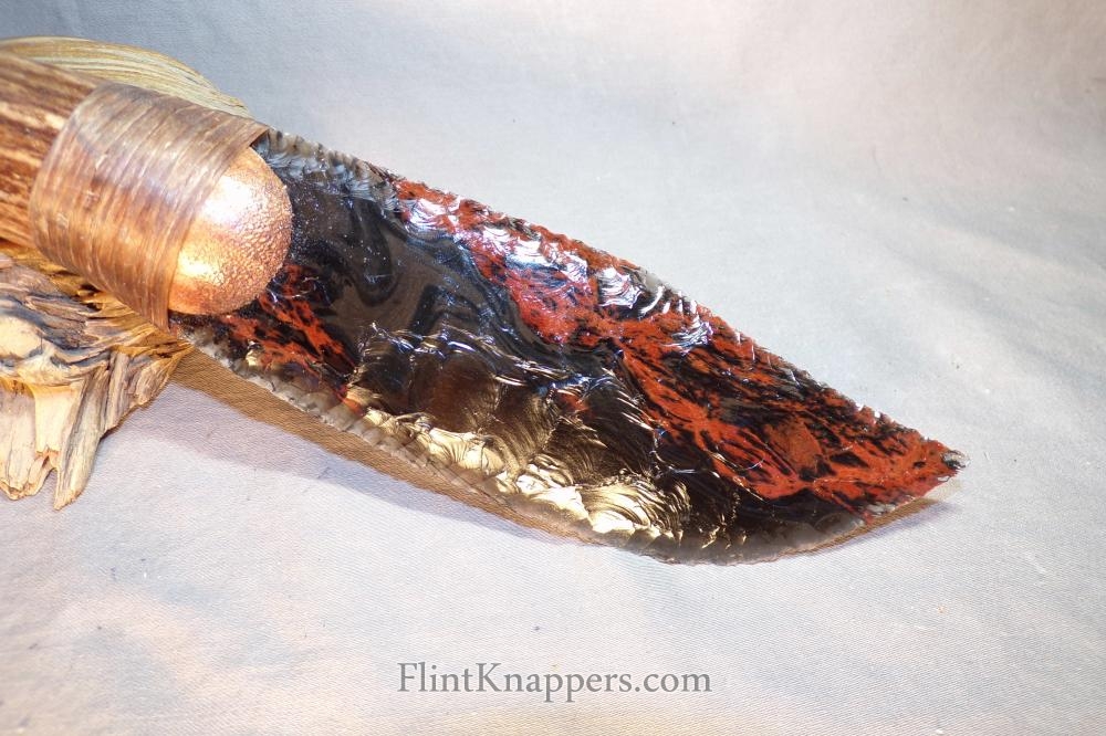 Unique Sheen and Red Obsidian Knife Carved African Handle |