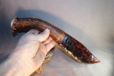 Triple Flow Obsidian Skinning Knife Carved African Antler Handle |