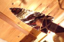 This is a beautiful, one of a kind, knife. It is 10 1/2 inches long measured straight and this nice blade has been knapped out of a triple flow Obsidian. The handle is a nice black tail deer antler.