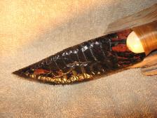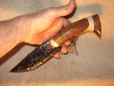 Knapped Dacite Paleo Knife Elk Antler with Walnut End Cap Handle |